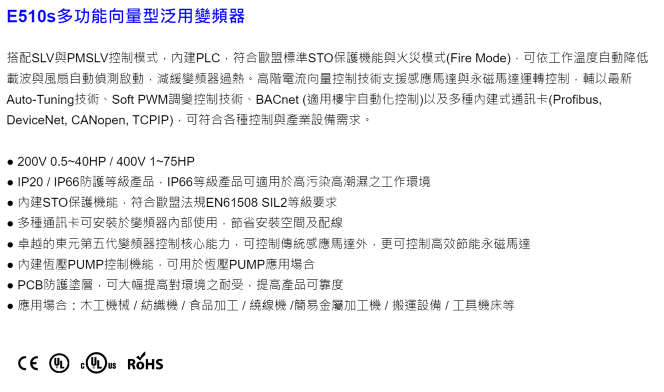 東元變頻器E510s多功能向量型泛用